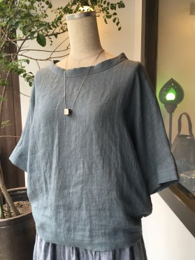 スモーキーなカラーが素敵なトップスは体に優しく寄り添うイメージです♪
