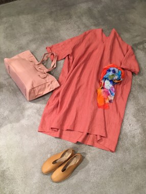 デニールのサーモンピンクのチュニックワンピースとコーデしてみました♪