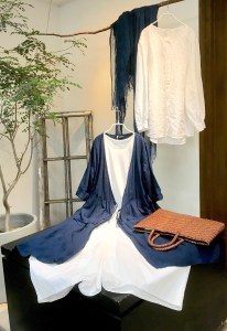 同じ素材でストールも 12000円+税 三角の形 優しい雰囲気のタンクトップです