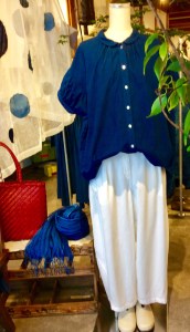 (高城染工)半袖パフブラウス+パンツ