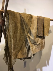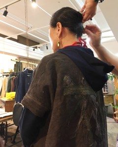 腕にはべんがら染のリネンストールをぐるぐる♬