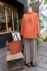 当店オリジナルの、べんがら染のリネンのチュニックワンピース!