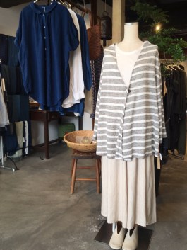 シャリッとした麻のロングワンピースです(o^^o)