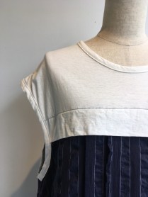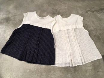 ネイビーと白の異素材の組み合わせが楽しいノースリーブ✨