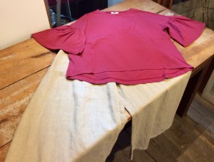 大きなアームホールとたっぷりの生地でできたドレープが素敵です。