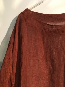 こちらは上のものより、ザラッとした麻のワンピース✨べんがら染✨