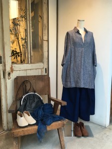 藍染✨光沢感のあるタックが魅力的です(*^o^*)