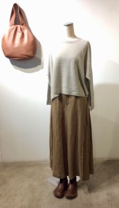 Aラインのシルエットですが、タックが入っているので広がりすぎません✨
