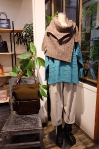 ザックリ着れるニットをストール風に巻いて!