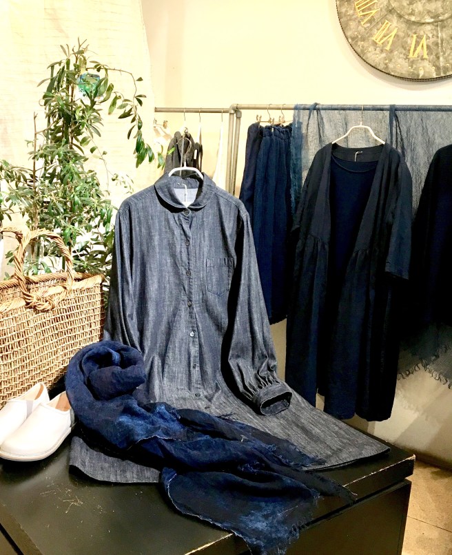 しっかりと染まった藍染めが美しいコートとストール !!