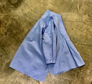 綺麗なパープルのピンタックシャツ。