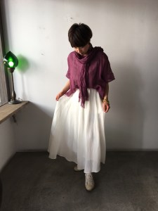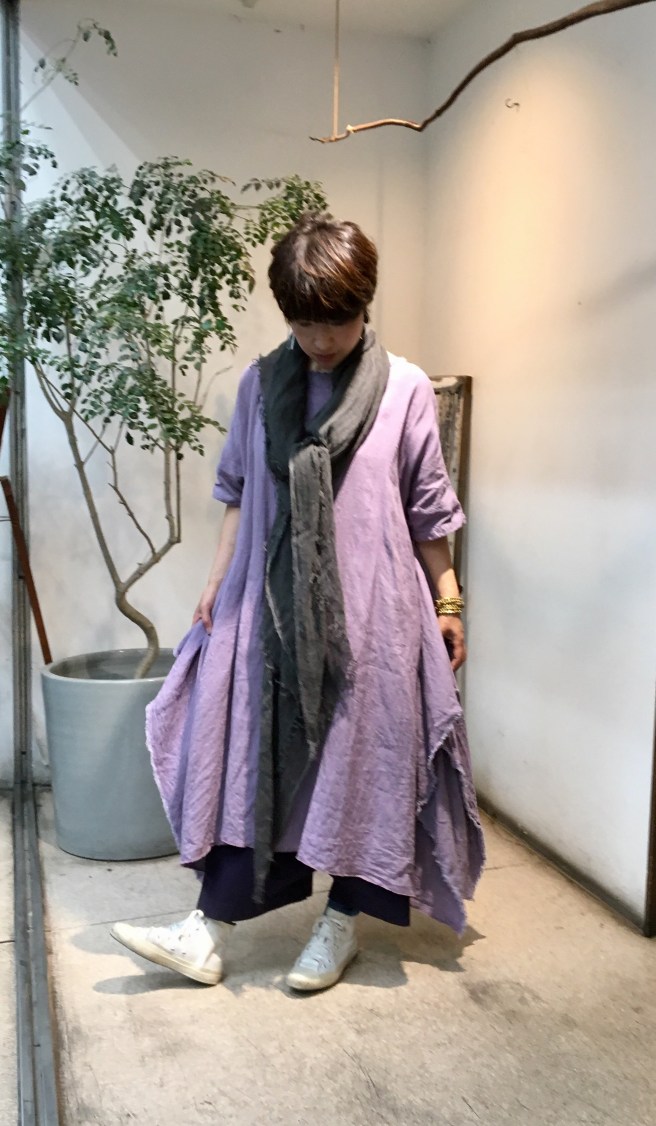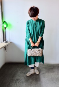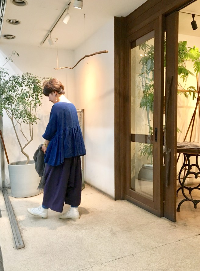 今日の青ao 6/16 6月 16, 2019 ~ atelierbyou カヤワンピース 麻のブラウスと白スカート サルエルパンツとオリジナルコート Tシャツワンピースと赤の水牛バッグ リネンワンピースと竹バッグ
