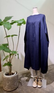 麻の藍染ワンピース 後ろファスナー