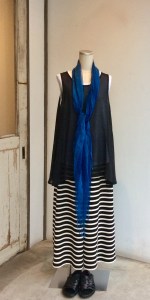 襟元スッキリワンピース 藍染とても良い生地目