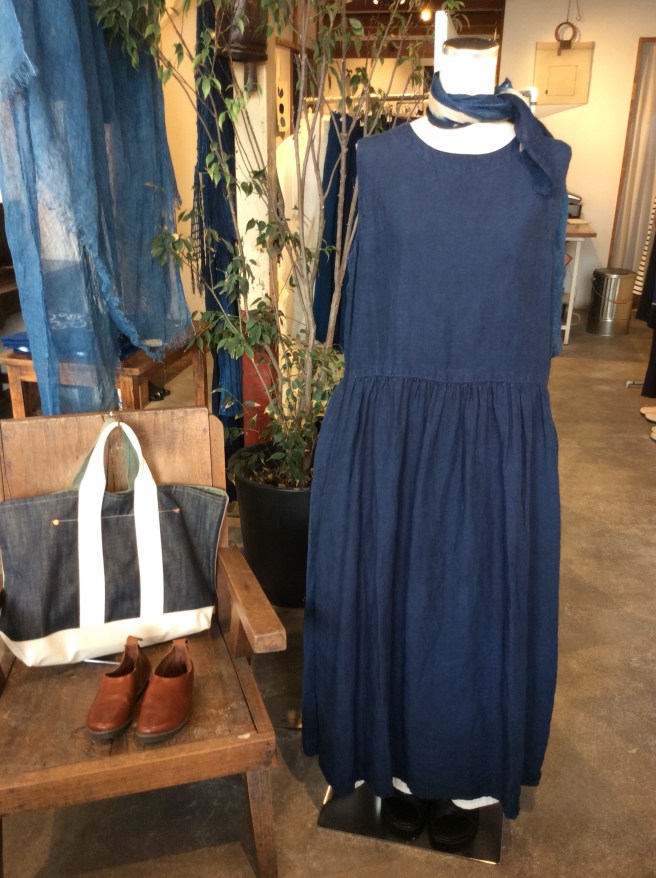 高城染工さんのノースリーブワンピースは誰の目にもつく美しい光沢です。