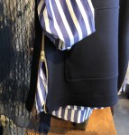 デニールのストライプシャツは少し太めのボーダーなので重ね着で隠れる部分が多くても存在感あり。