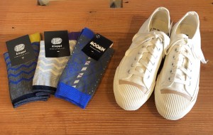 秋冬の暗くなりがちなコーデの足元を柄の靴下で可愛くするとアクセントになります。
