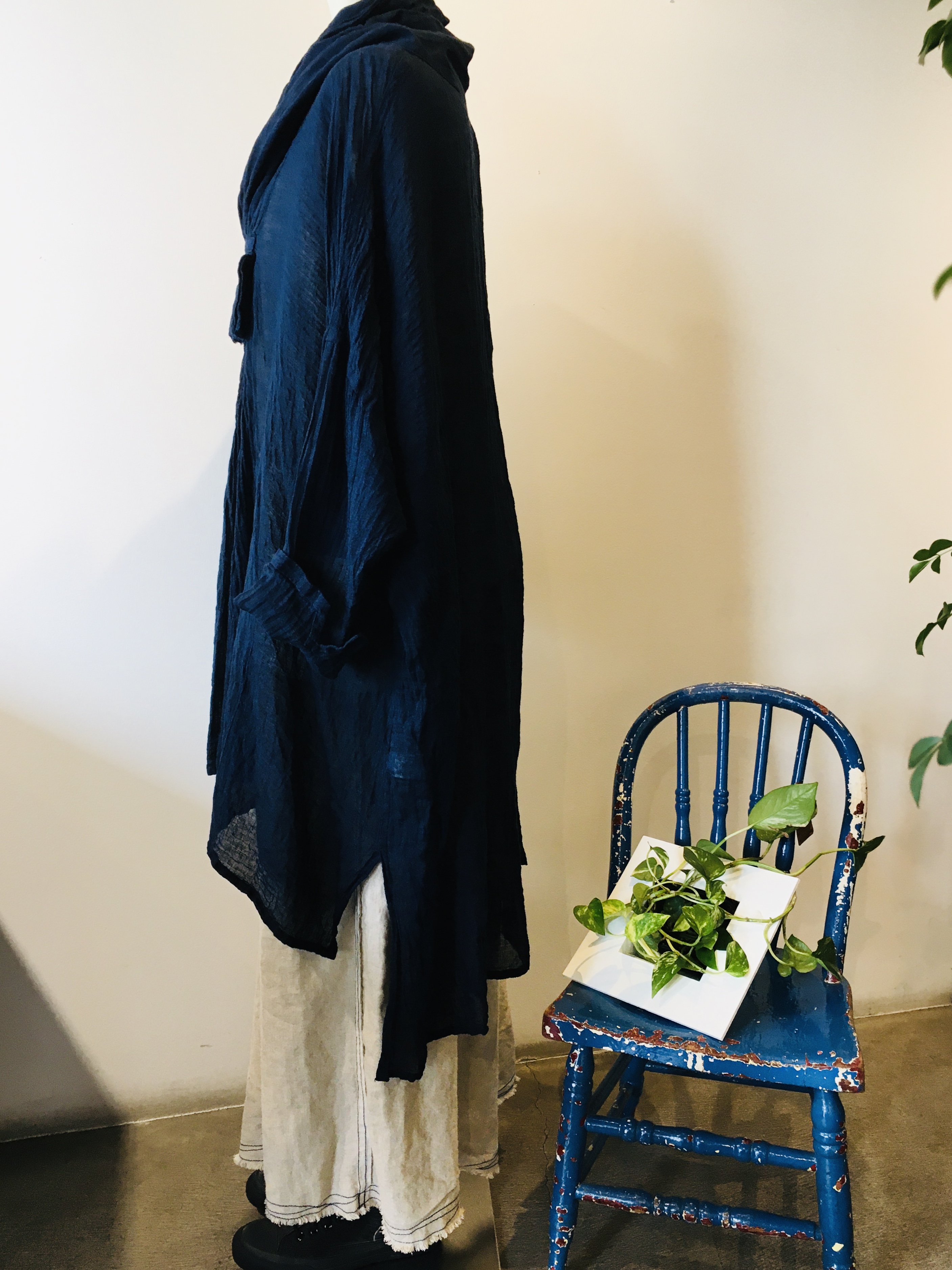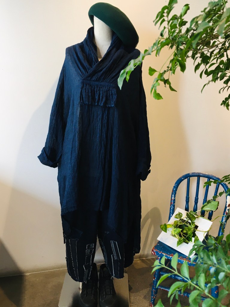 しっかりと染め上げられた生地を贅沢にたっぷりと使用した、チュニックブラウス・・・本日入荷しました♬