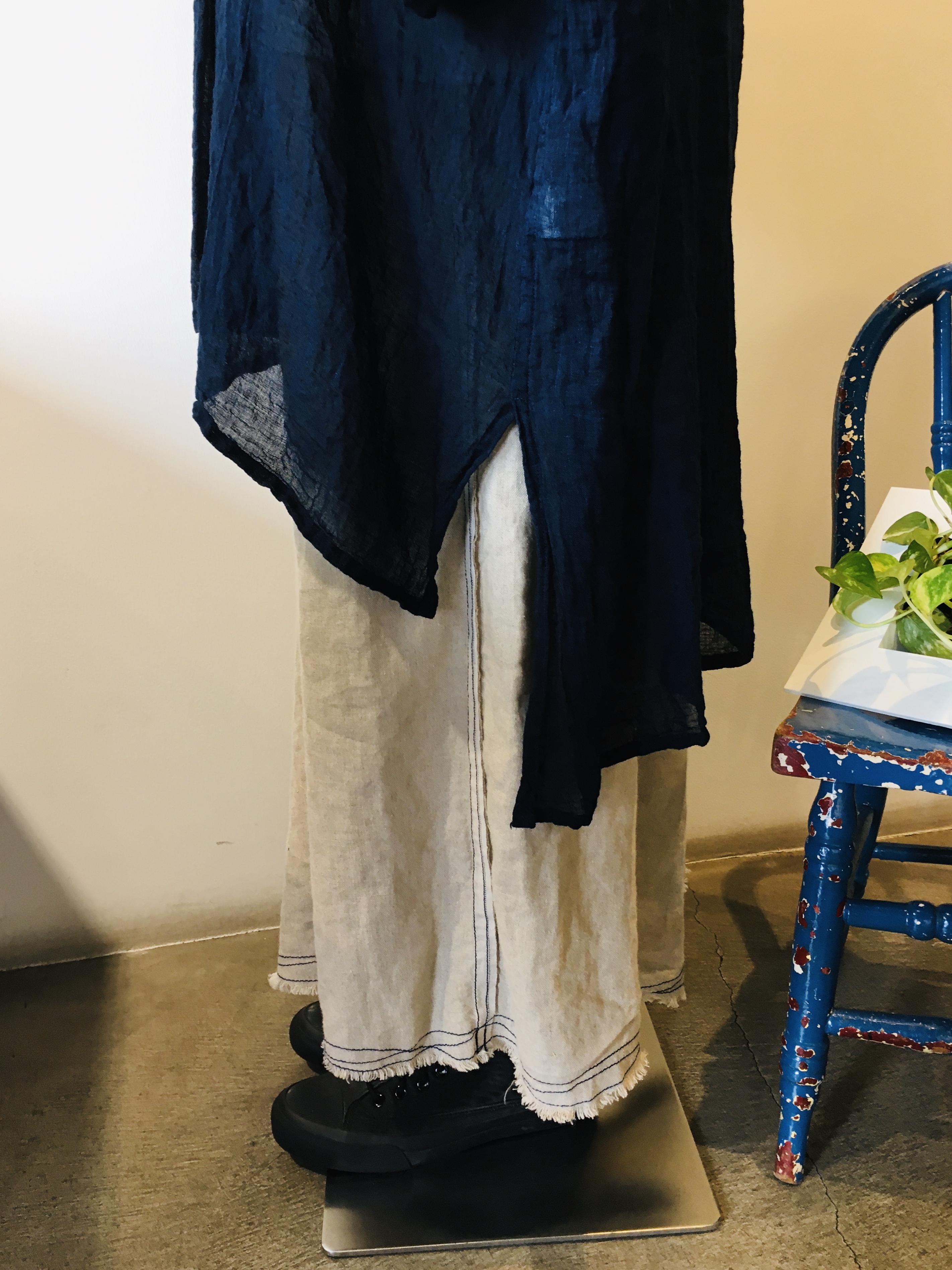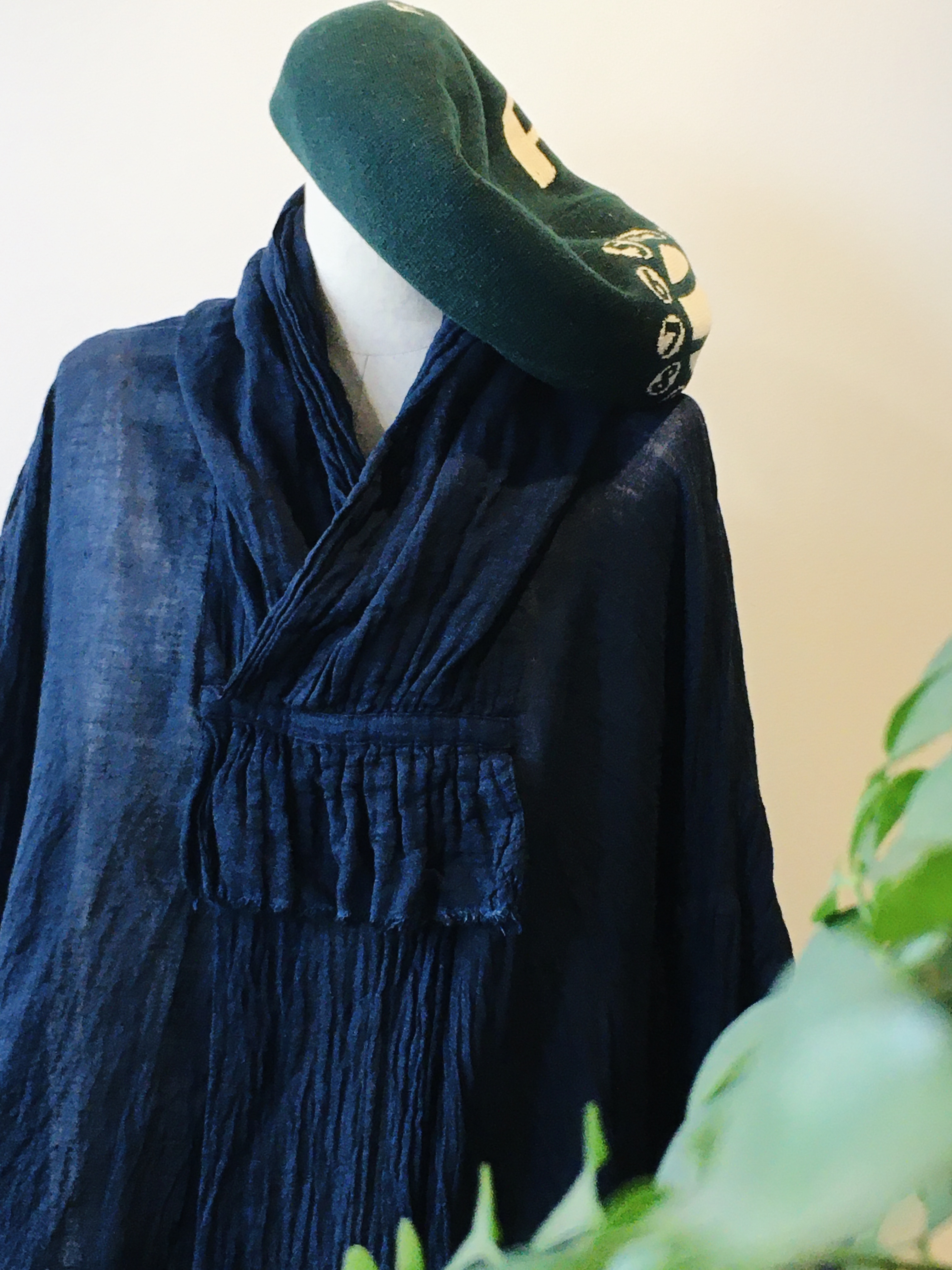 今日の青ao,応武は、藍染ワンピース+パッチワーク パンツで店頭にいます♬