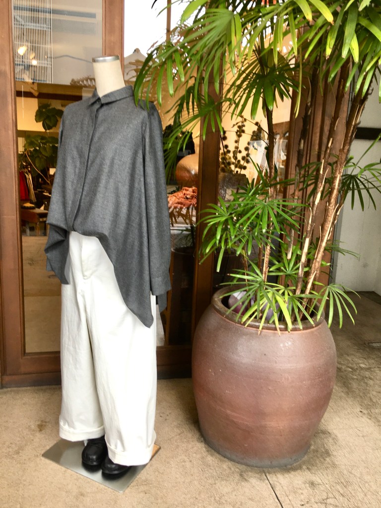 秋冬らしく暖かみのある薄手のウール素材のブラウス・・