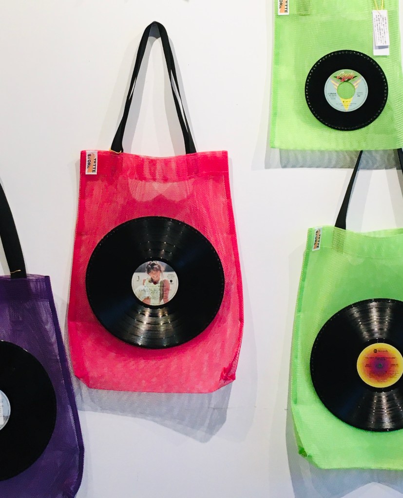 レコード盤を使ったメッシュバックです。