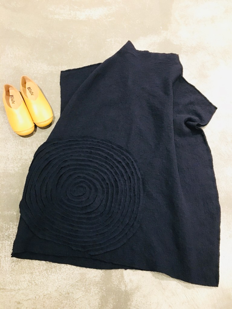 ぐるぐる渦巻きの圧縮ウール・チュニックです。