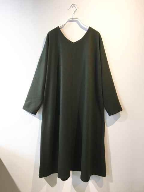 ・デニール Vネックワンピース (ダークグリーン・ブラウン)