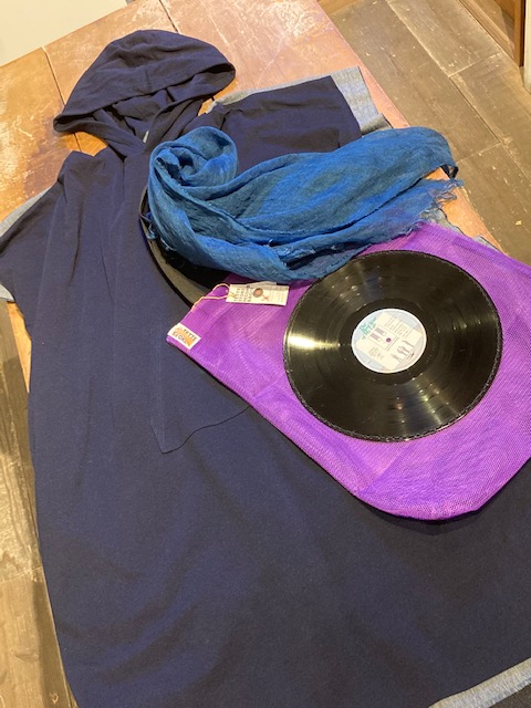 デニムにべんがら麻かやストールいかが