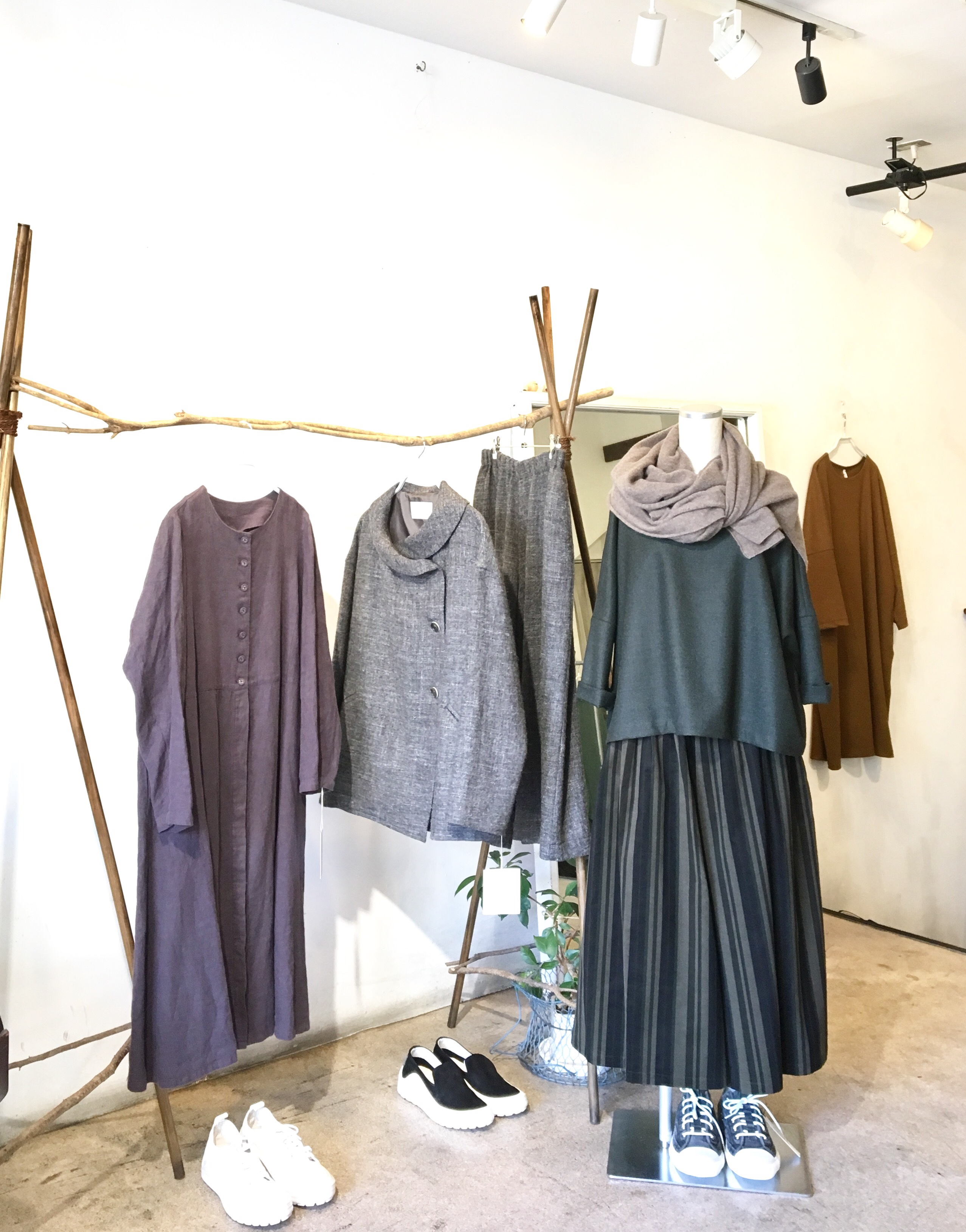 デニムにべんがら麻かやストールいかが