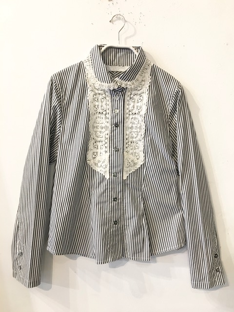・ストライプ柄ブラウス・ダークグレー(M93302−19)23000円+税