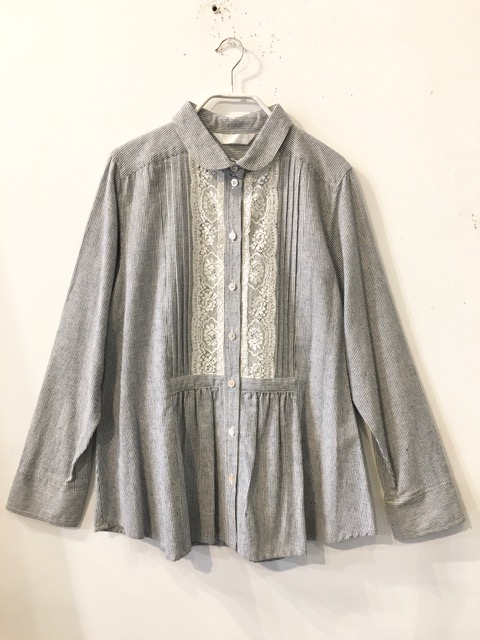 ・ストライプ柄ブラウス・ライトグレー(M93304−71)28000円+税