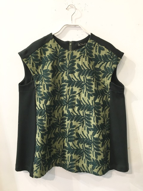 ・刺繍ノースリーブプルオーバー・グリーン(M83412-10)23000円+税