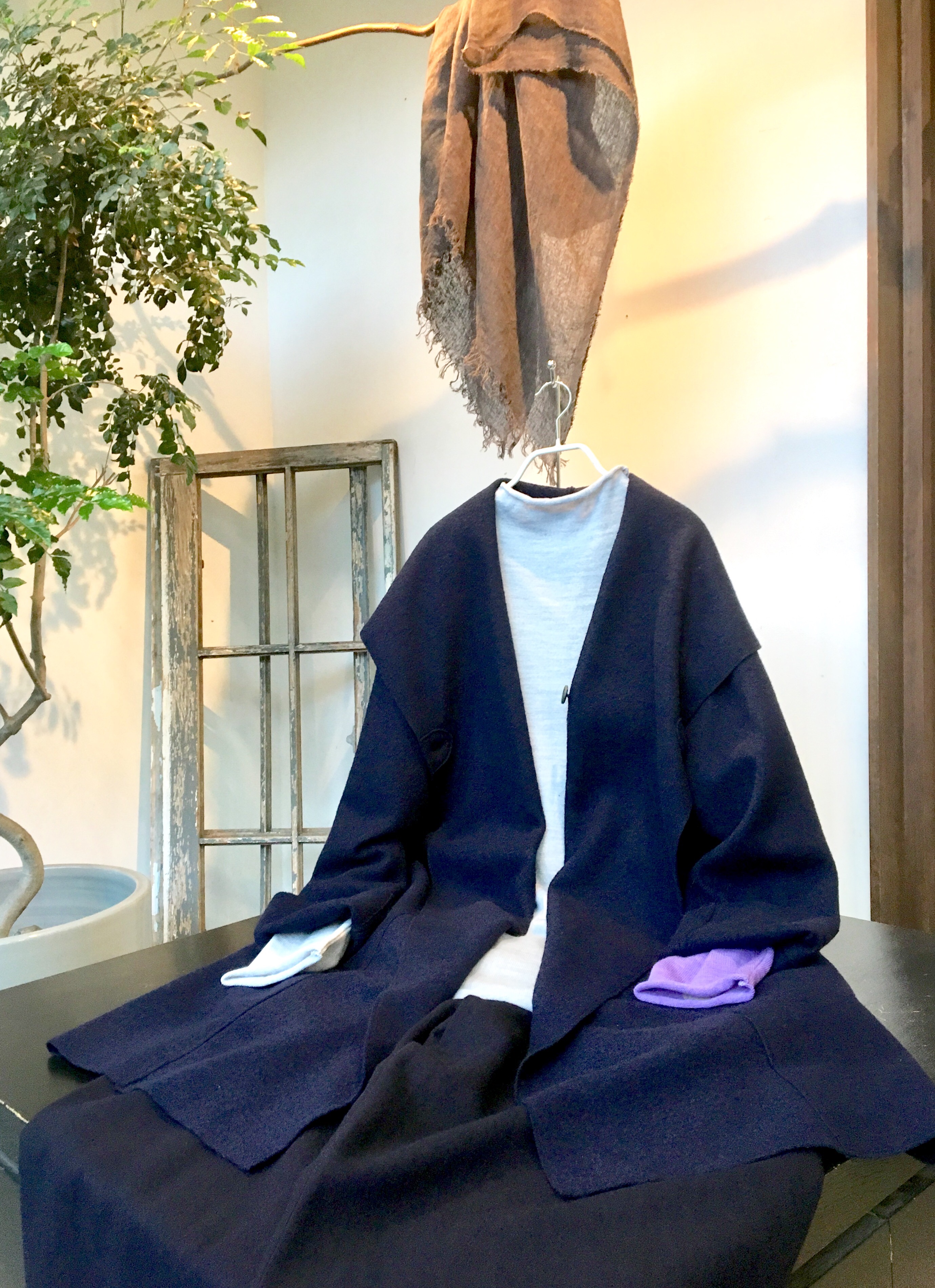 圧縮ウールのワンピース 、これからの季節、重ね着して、着丈もあるので、