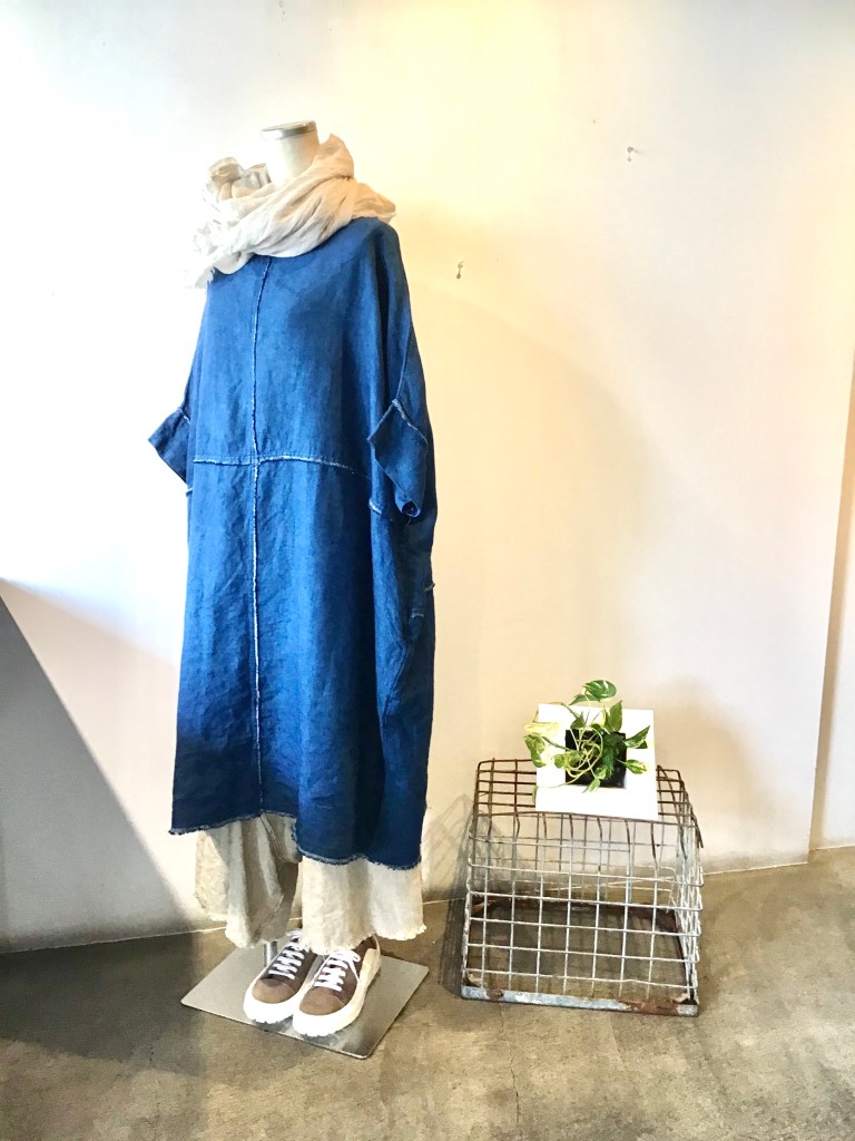 これからの季節、重宝するデニールのリネンのワンピースです。