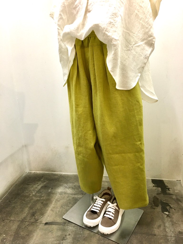 デニールの定番エッグパンツ、リネンでお色の綺麗なパンツが入荷しましたー!