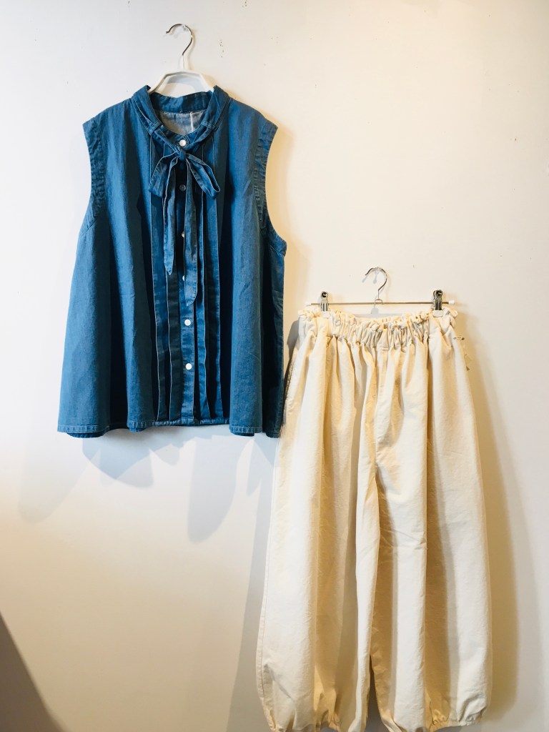 リネンぶかぶかパンツ・藍染.シャンブレー色 各 ¥25300(税込)