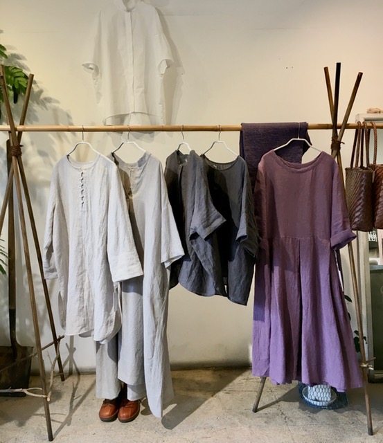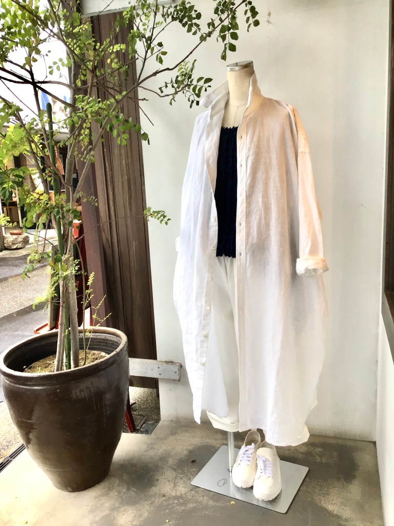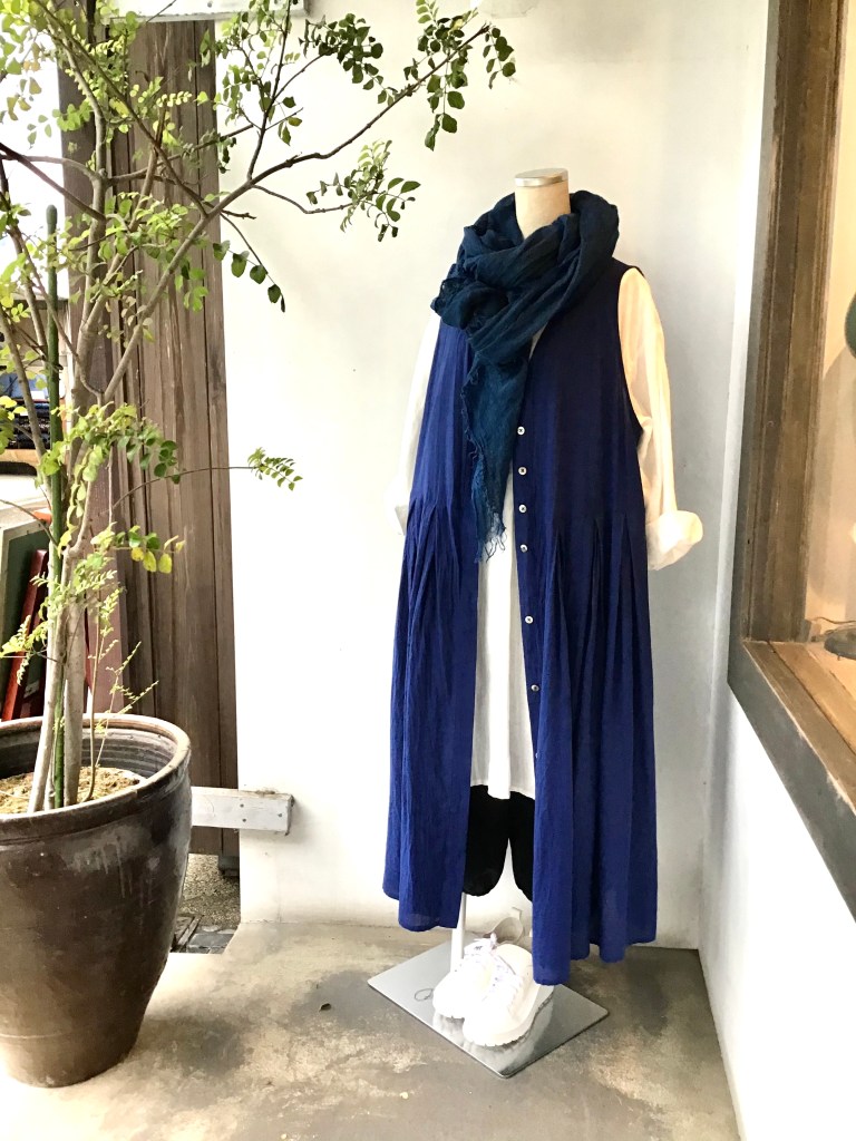 今日の青 5/5 5月 5, 2021 ~ atelierbyou GW最終日、朝から、雨です・・・ (高城染工)リネンロングシャツ・フリンジブラウス (+2)コットンノースリーブワンピース (+2)コットンシャツ・ワンピース (デニール )プルオーバー ・Vネックワンピース (ポプリ)コクーンスカート(ディーク)チュニック