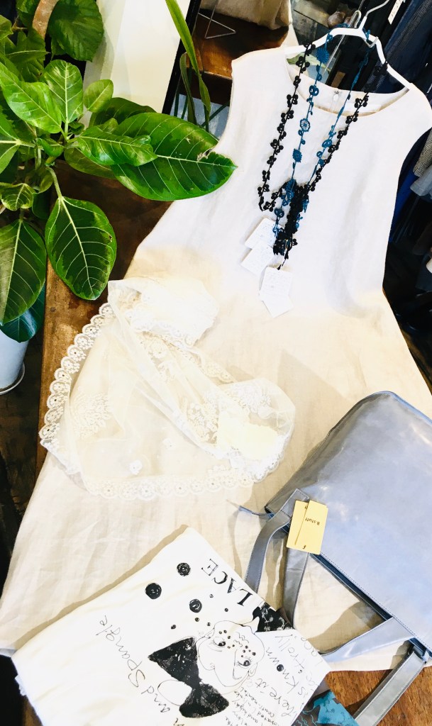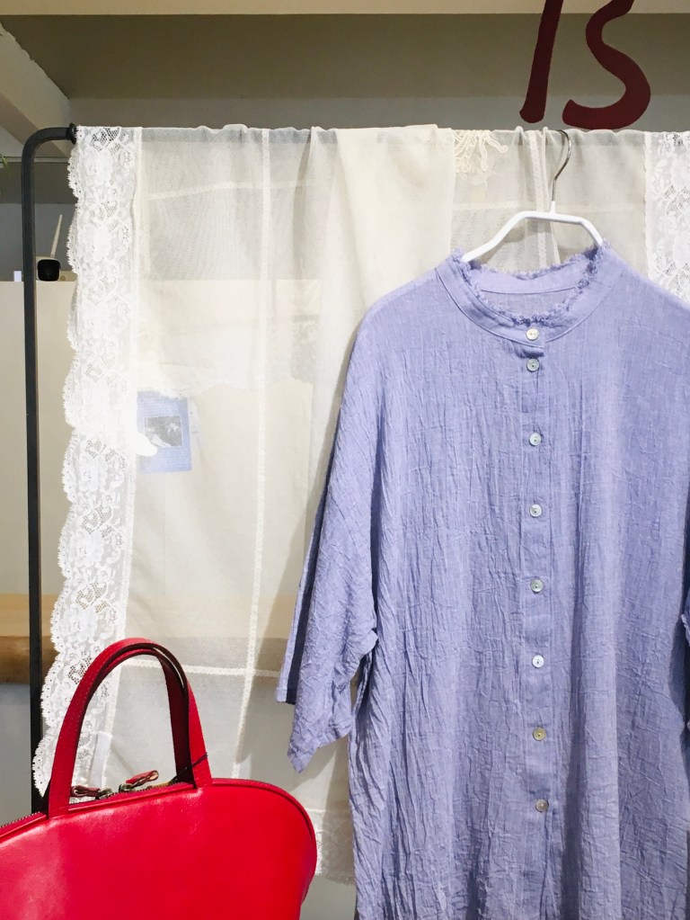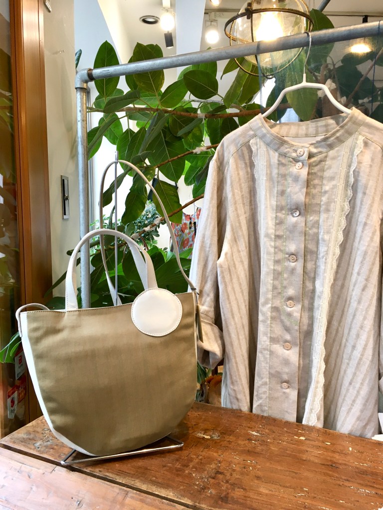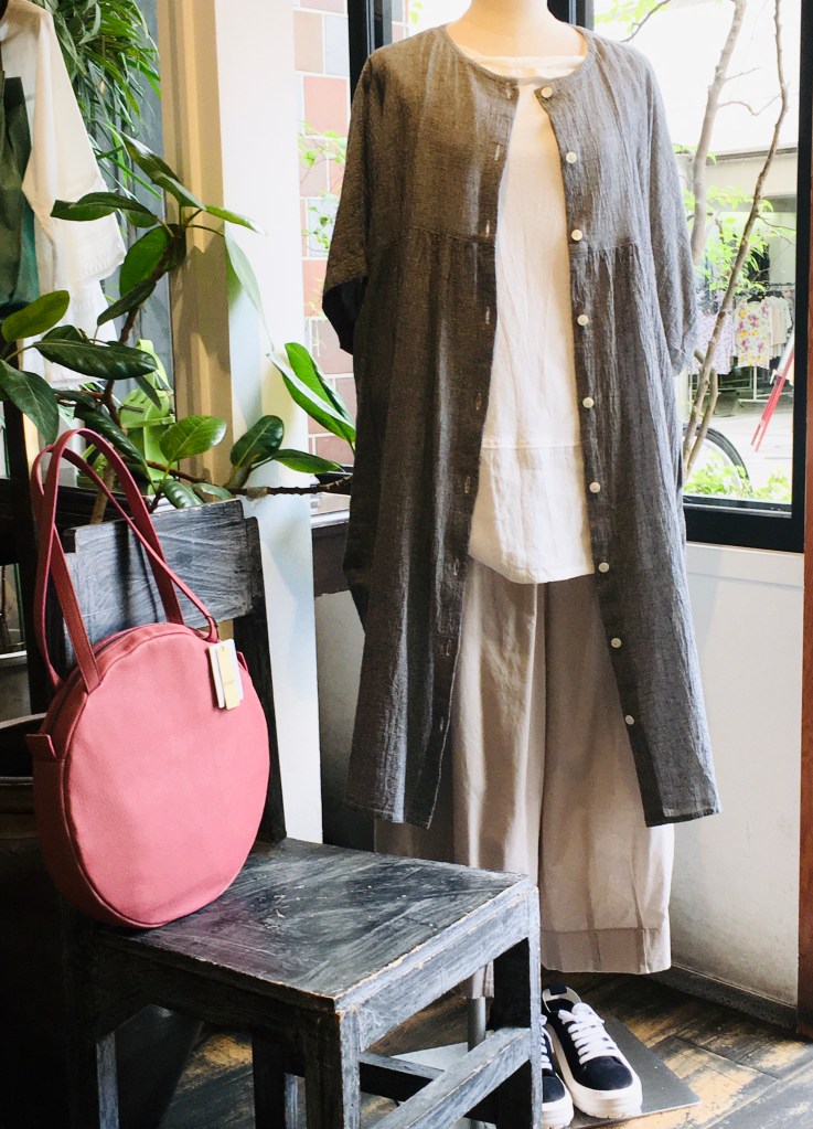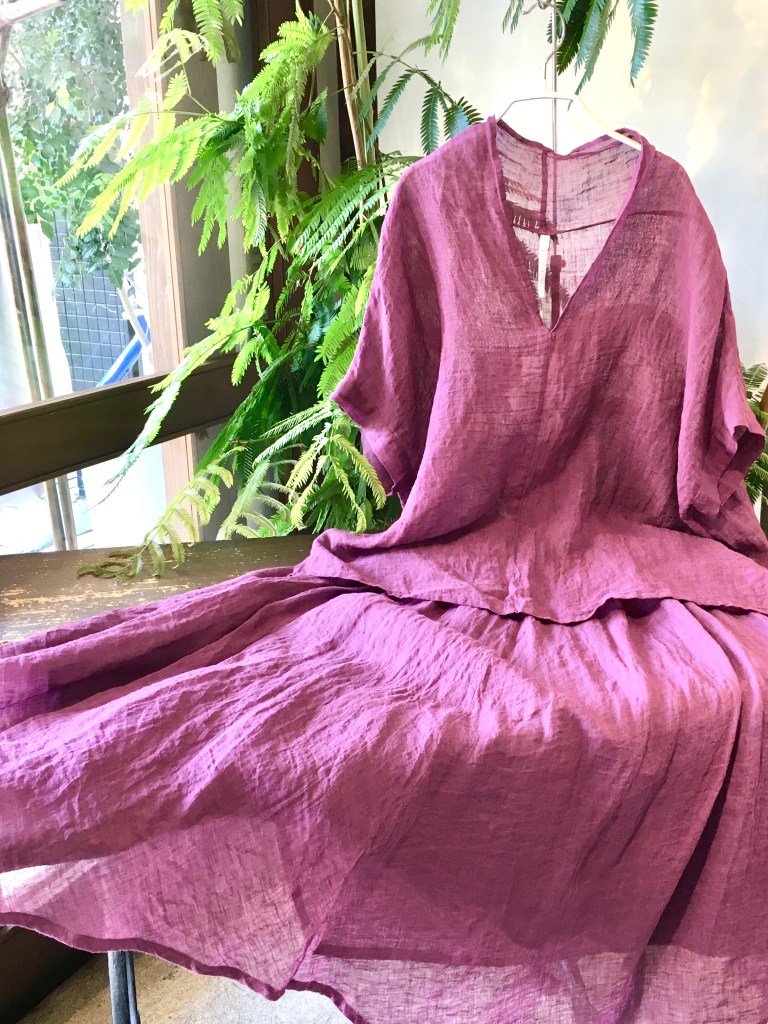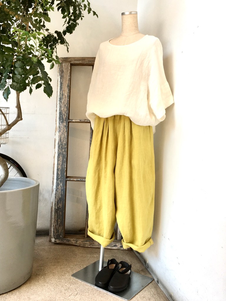 デニールのリネン素材のプルオーバー・色の綺麗なエッグパンツ、今日の日差しにぴったり(#^.^#)
