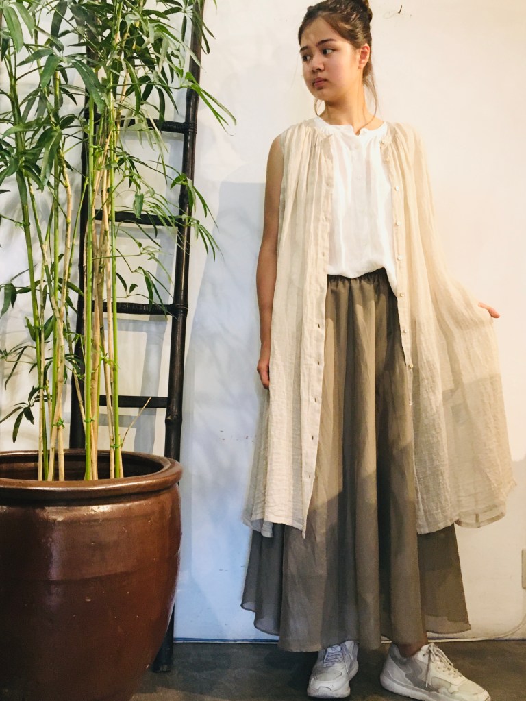 リネン素材で、たっぷりと大人可愛く決まりますよ♬