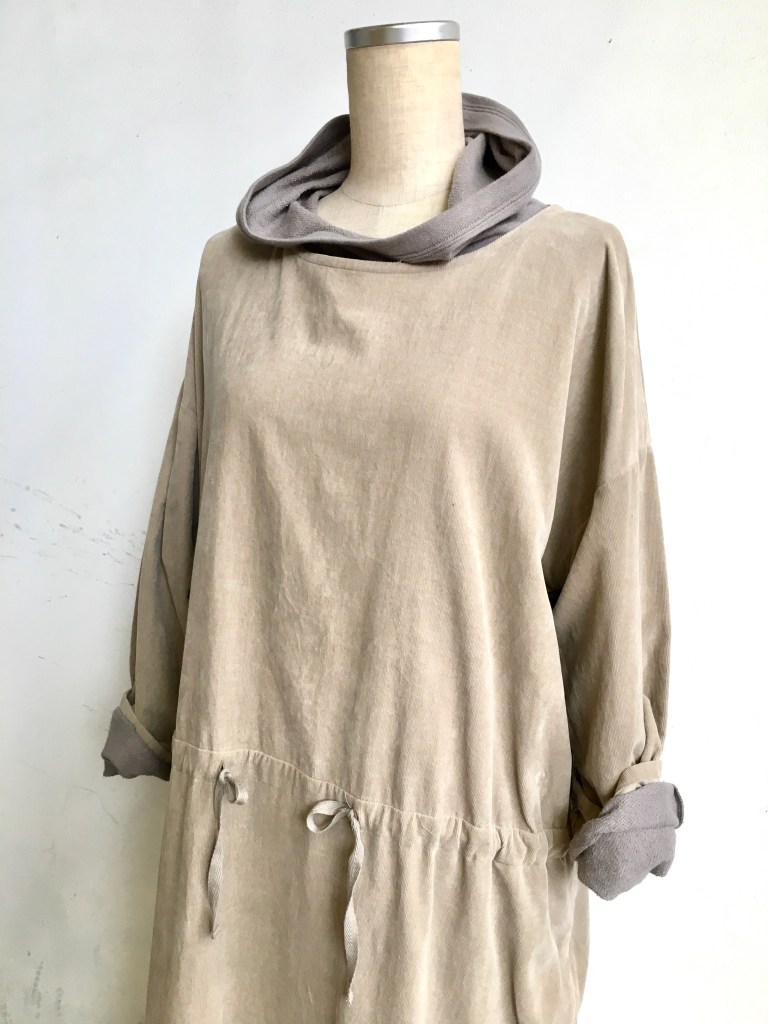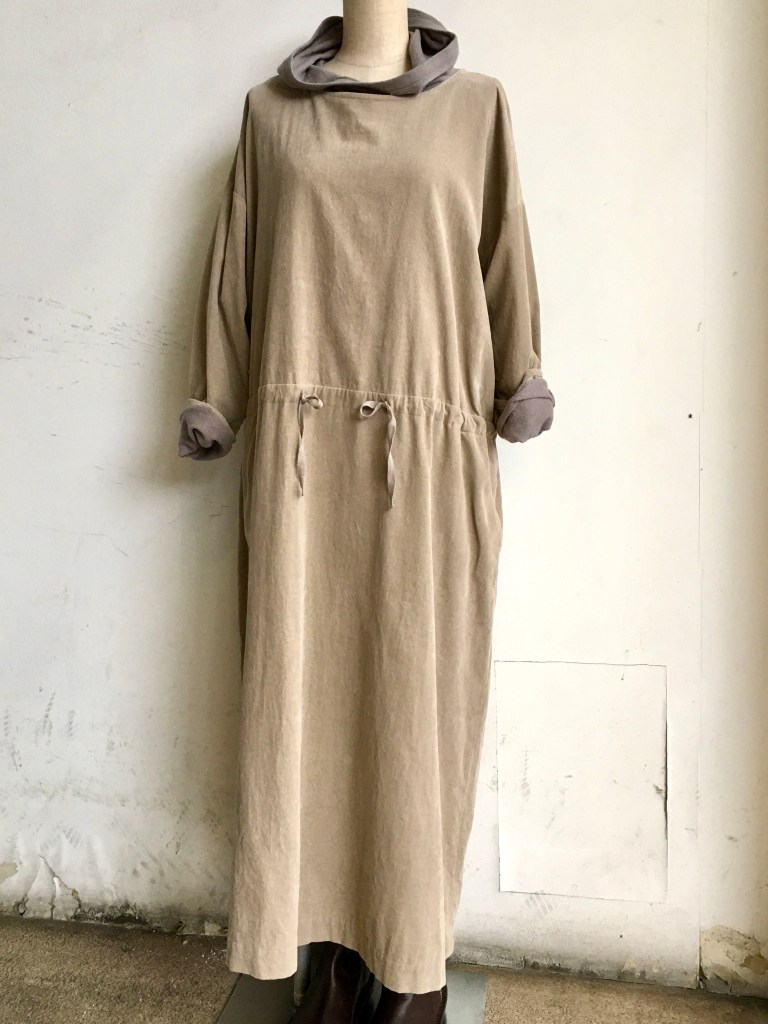 デニール のフード付きのワンピースにもう1枚ワンピースを重ねて見ました。