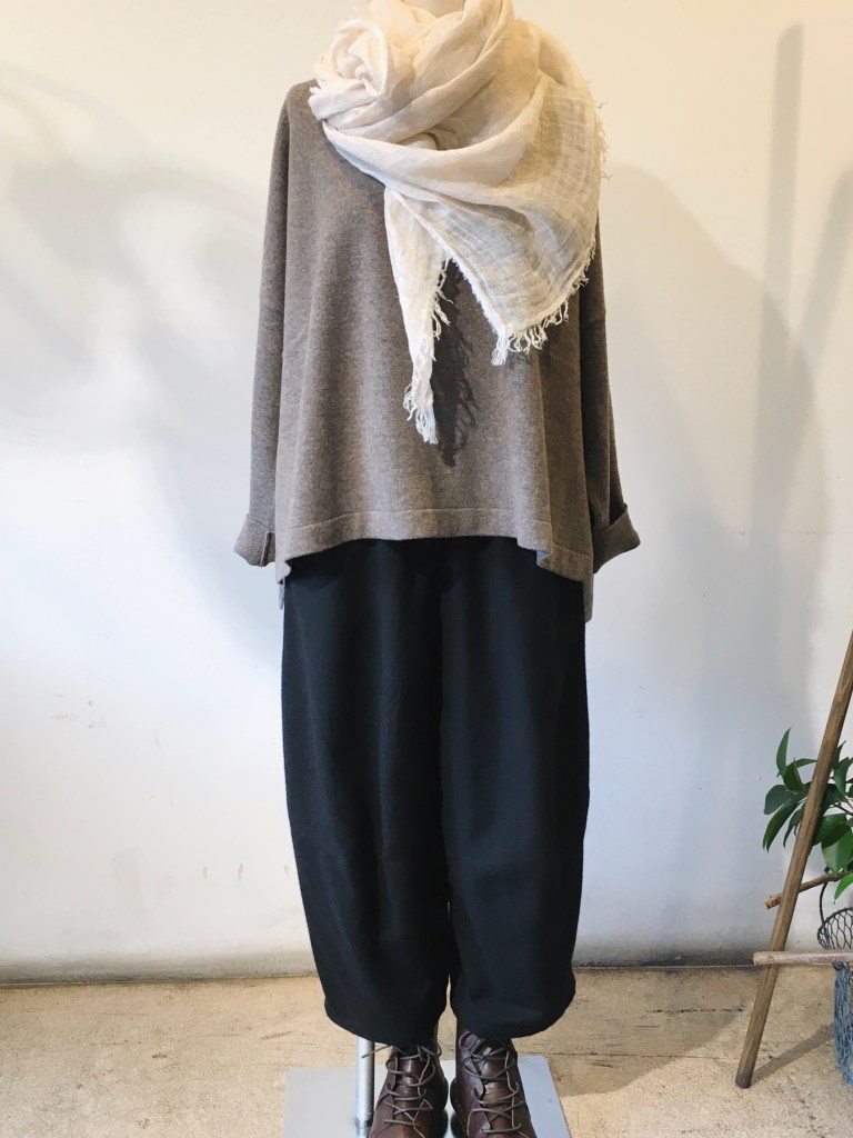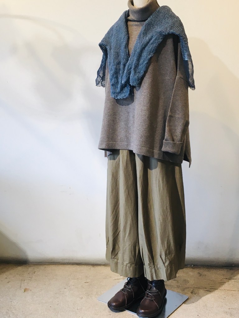 ↓パンツは、メイアファボリさんのワイドパンツです。