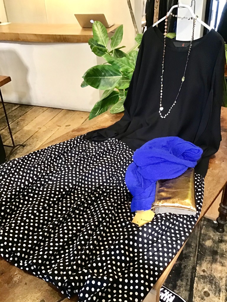 萌さんのワンピース、ドット柄が可愛いです。