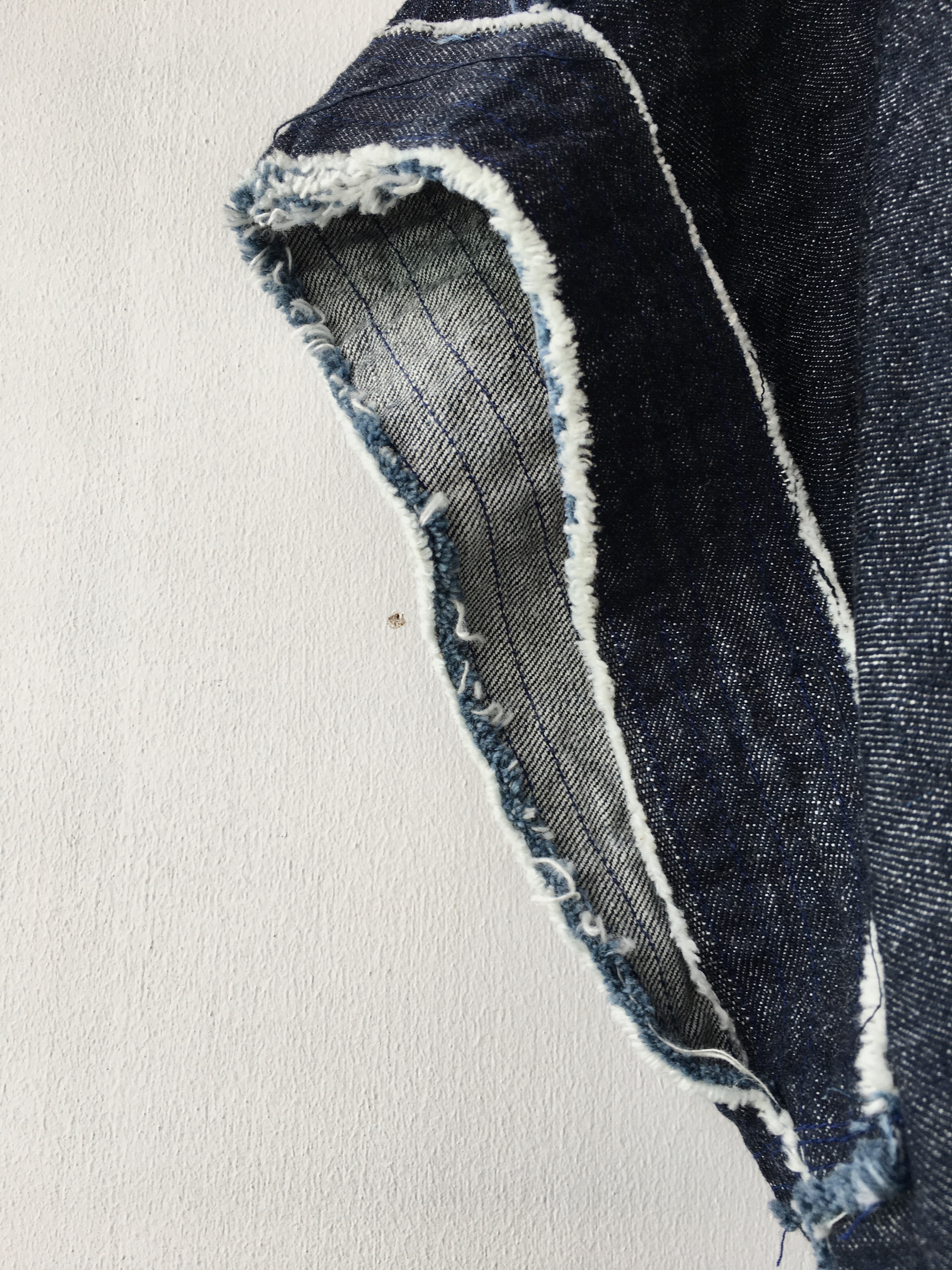 お馴染みのジーンズ生地で裾の長さが少し異なります。