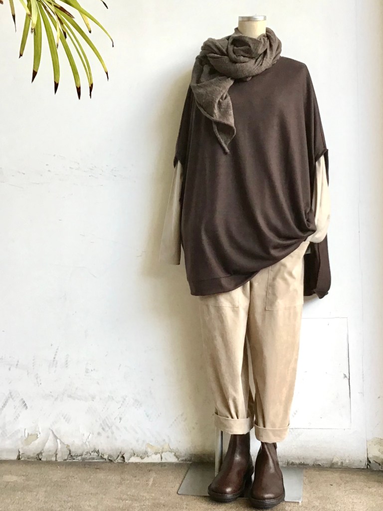 テロンとした柔らかな着心地のウールは暖かく扱いもしやすいのでオススメです