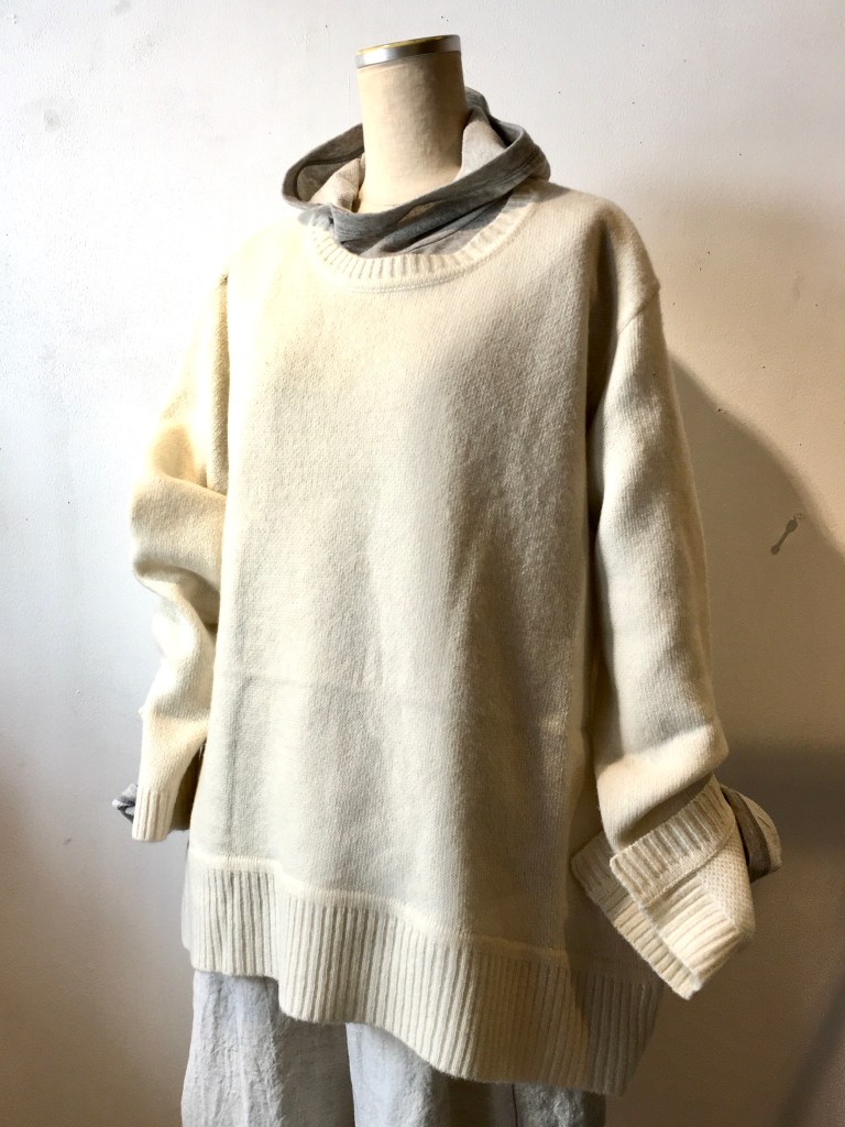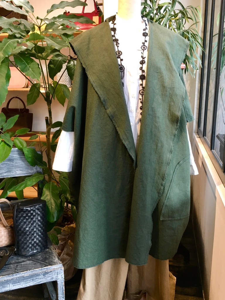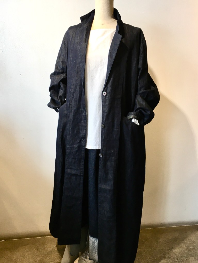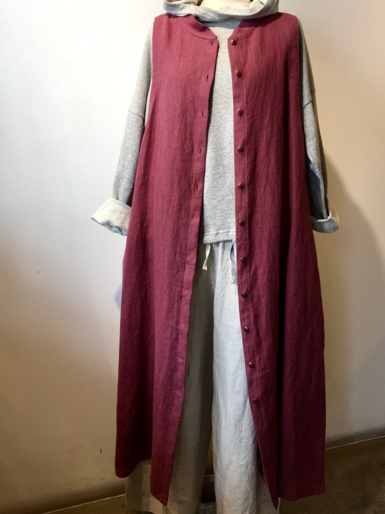 今日の青ao 1/27 1月 27, 2022 ~ atelierbyou ポプリ・・ロングベスト・チュニック 萠もゆる ・・セーター・ワンピース 高城染工・・ビッグポケットシャツ・リネンタックブラウス・ロングコート