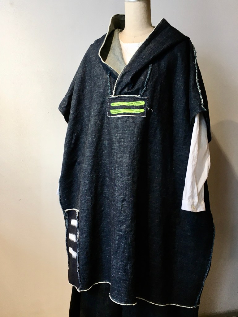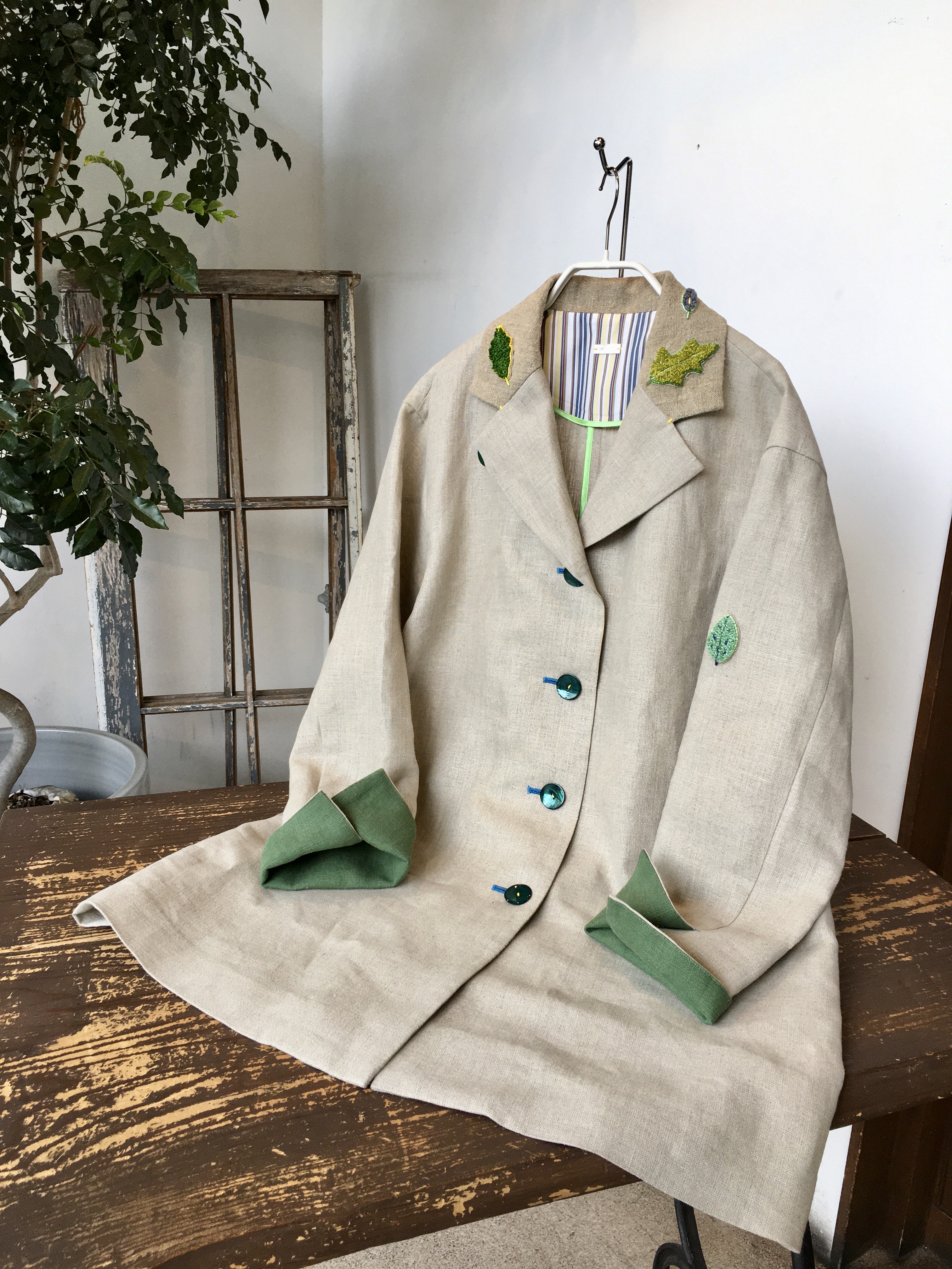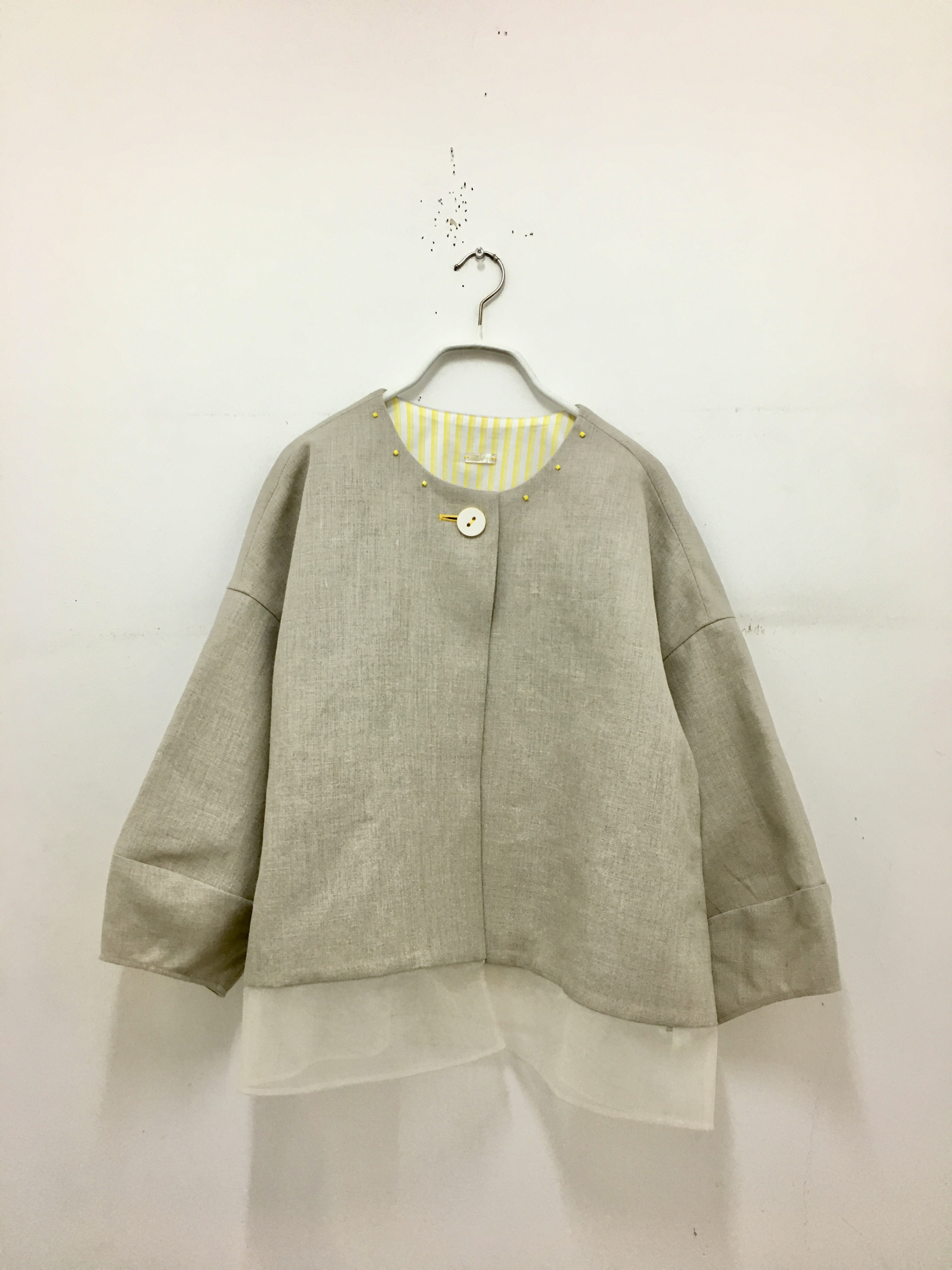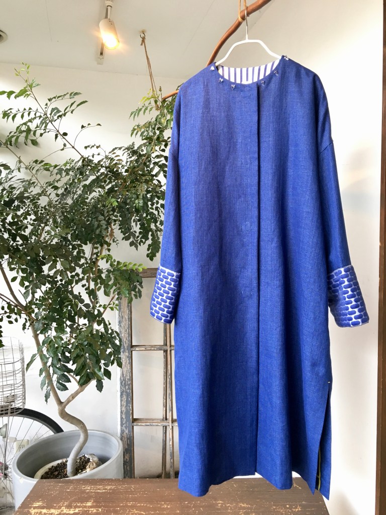 薄手デニムニットと麻生地のジャケット