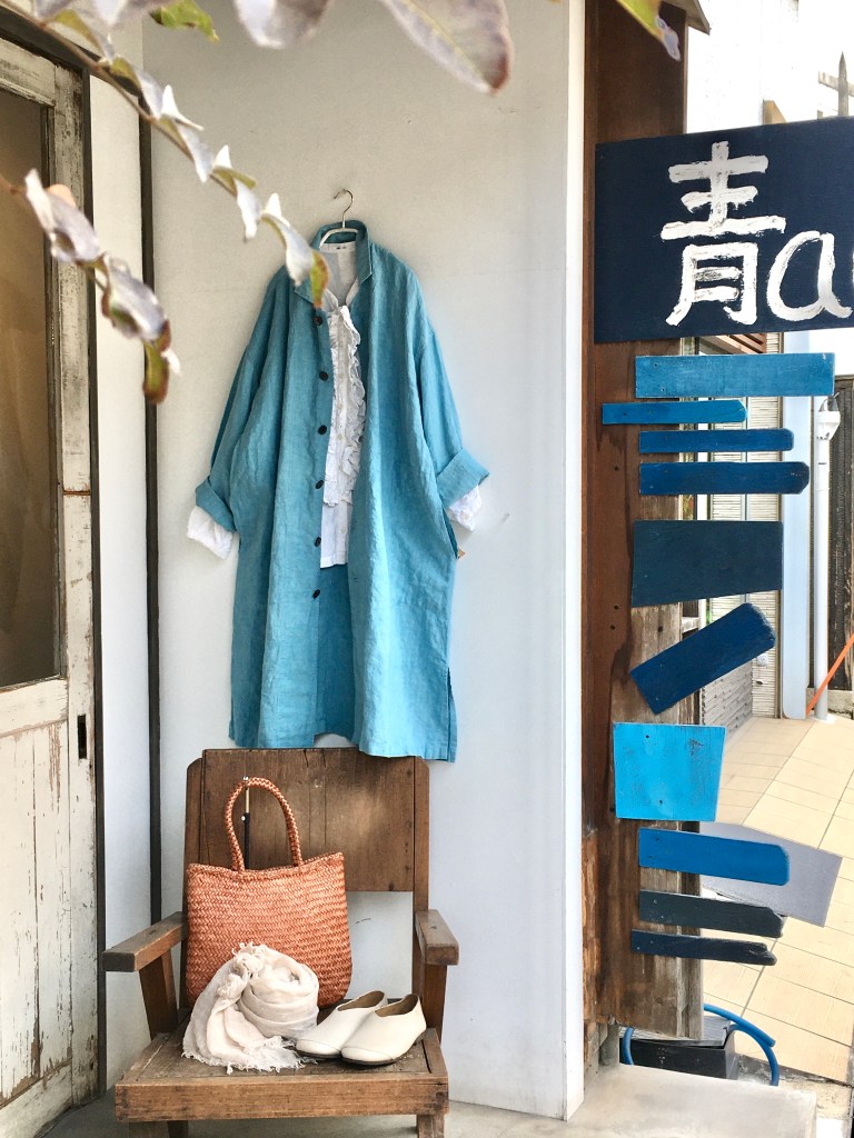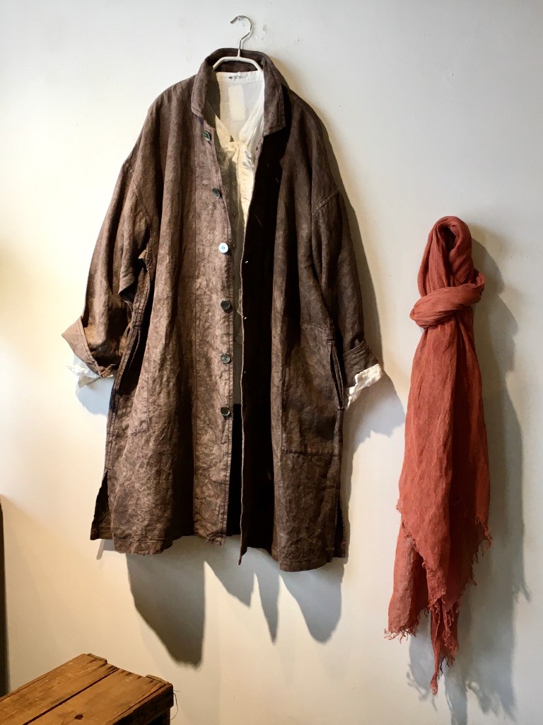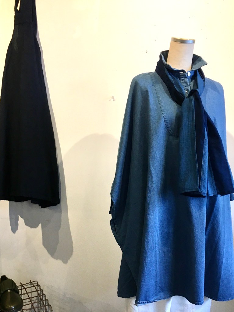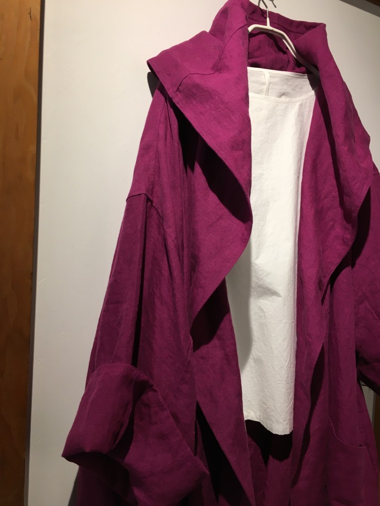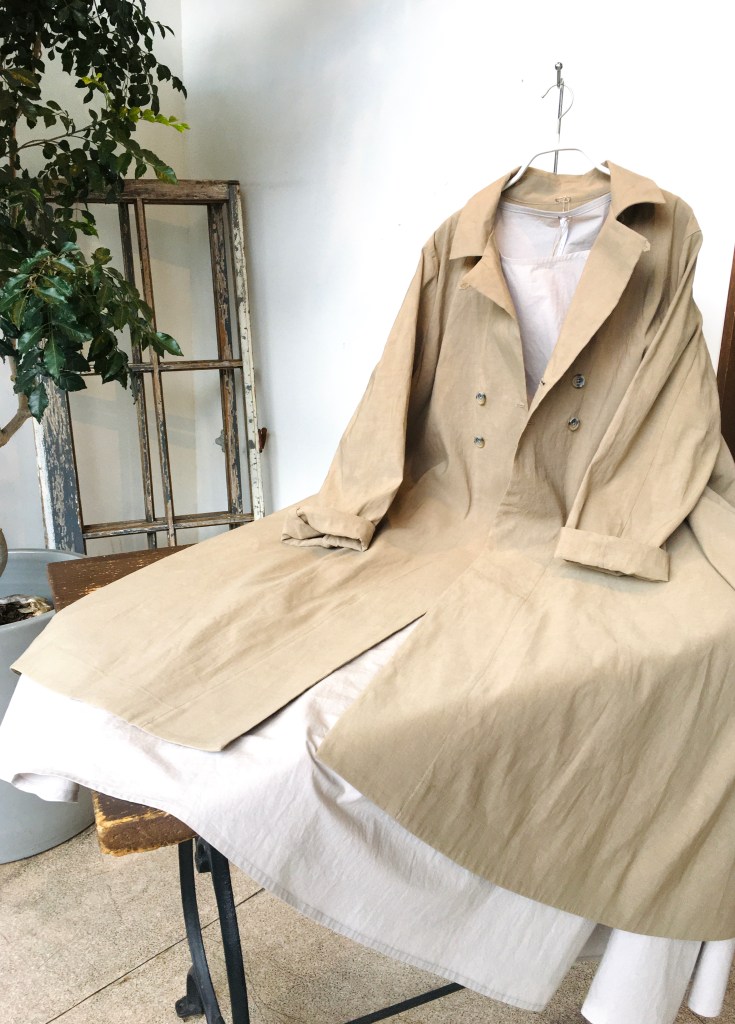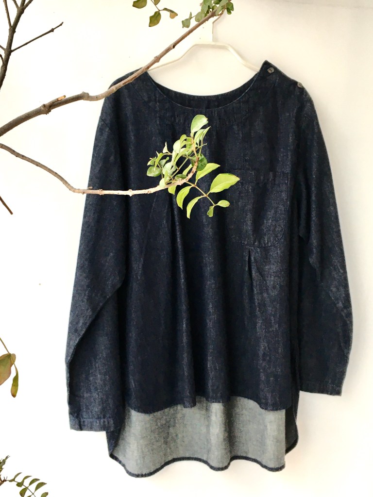薄手デニムニットと麻生地のジャケット