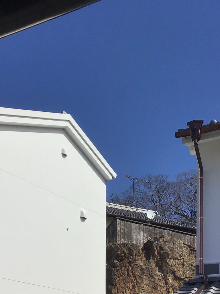 雲ひとつない、澄み切った青空、風が冷たいです!
