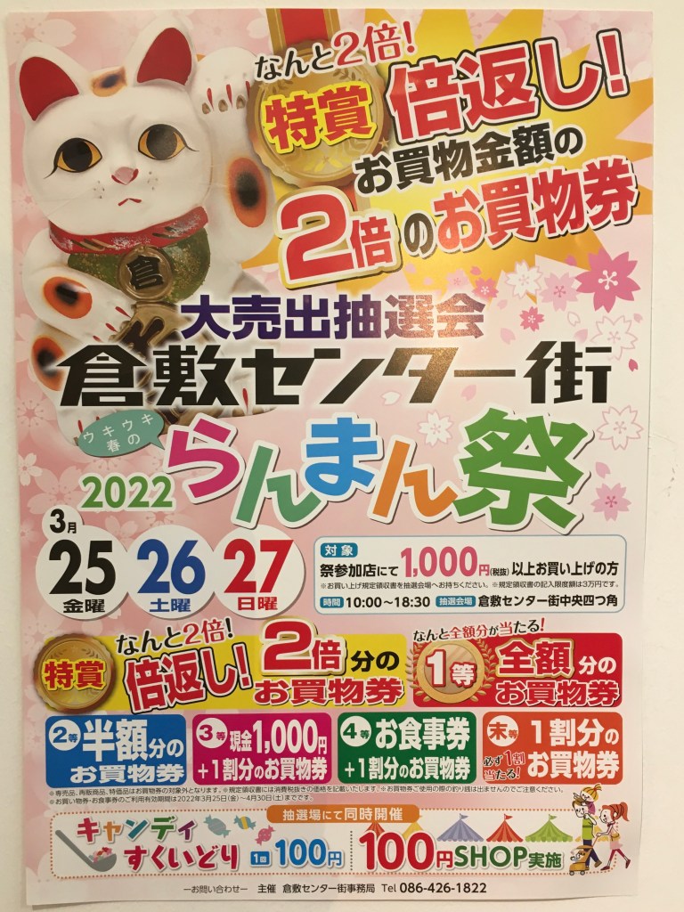 そこで朗報が、毎年恒例の倉敷商店街の春の感謝祭、3月25日(金)・26(土)・27(日)の3日間限り
