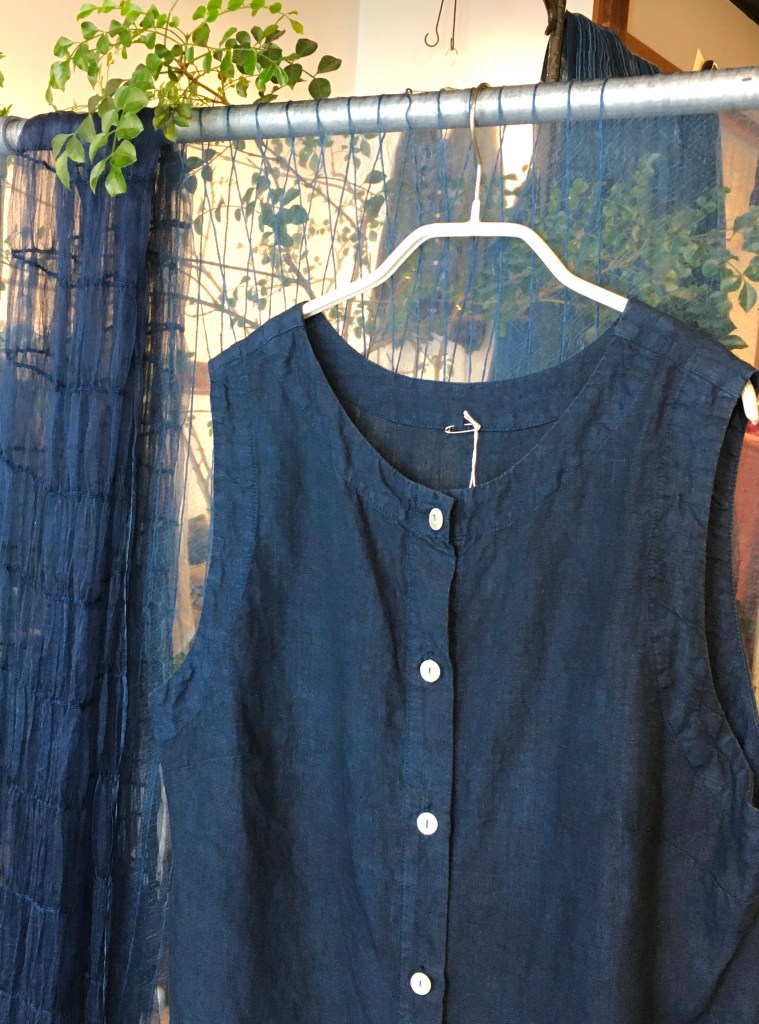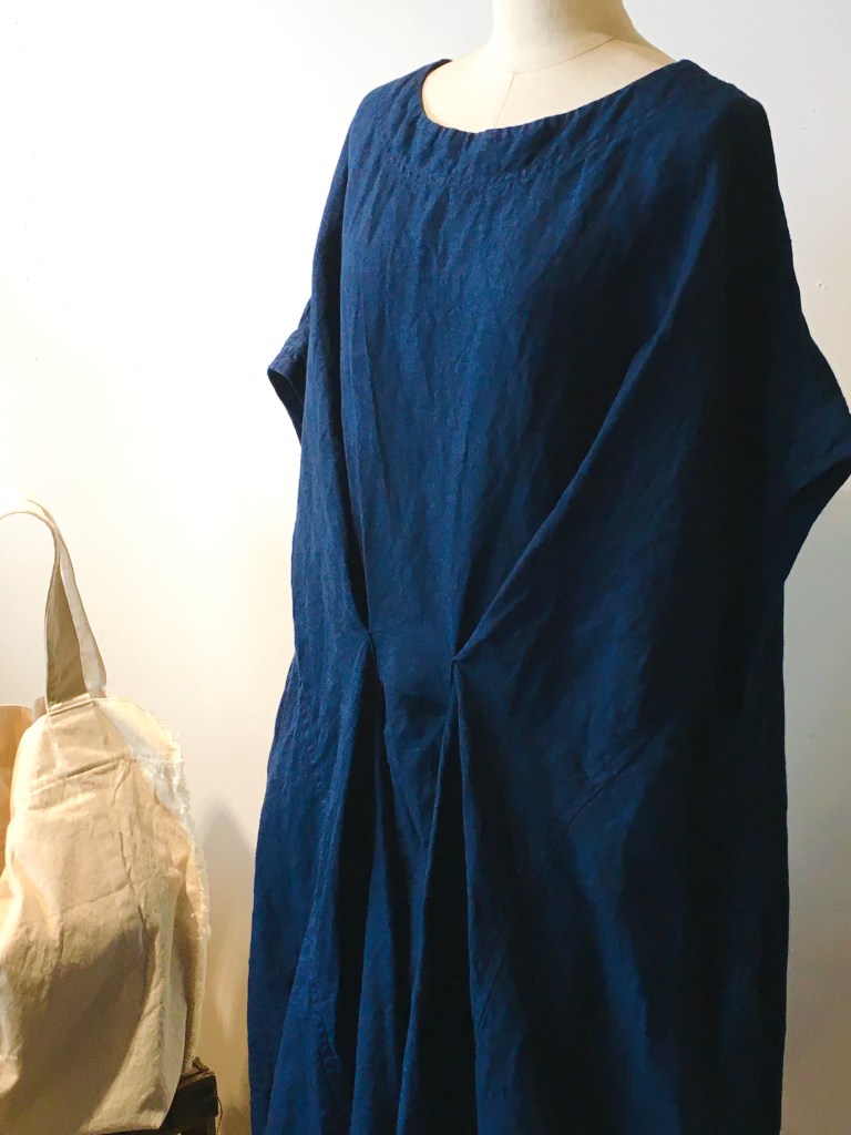 美しく染め上げられた藍染・タックワンピース(陽オリジナル)